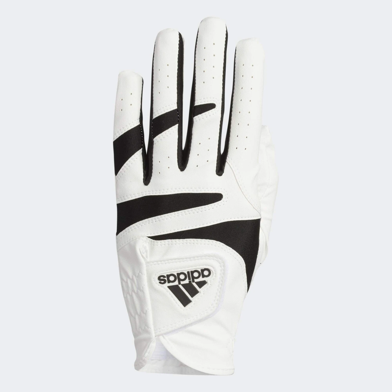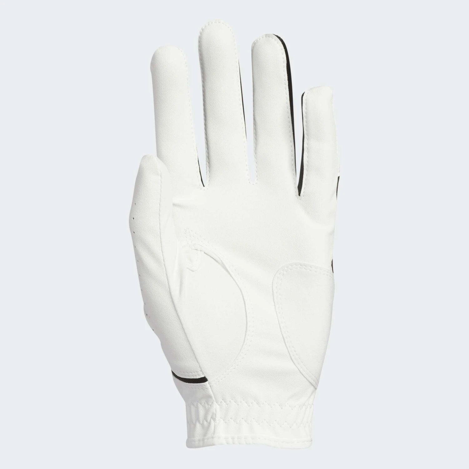 Swing with confidence with this adidas golf glove. The synthetic leather build ensures a solid grip on your club, and stretchy fabric on the back keeps it flexible. A hook-and-loop flap lets you adjust the fit, and an elastic cuff provides a snug feel as you aim for the pin.