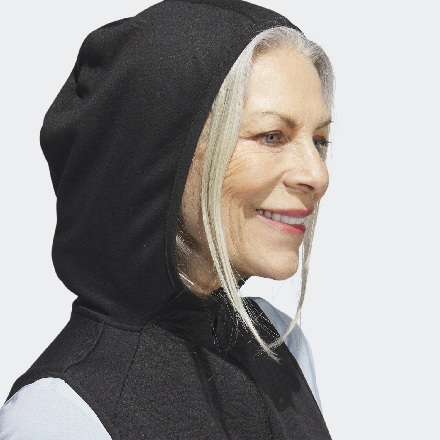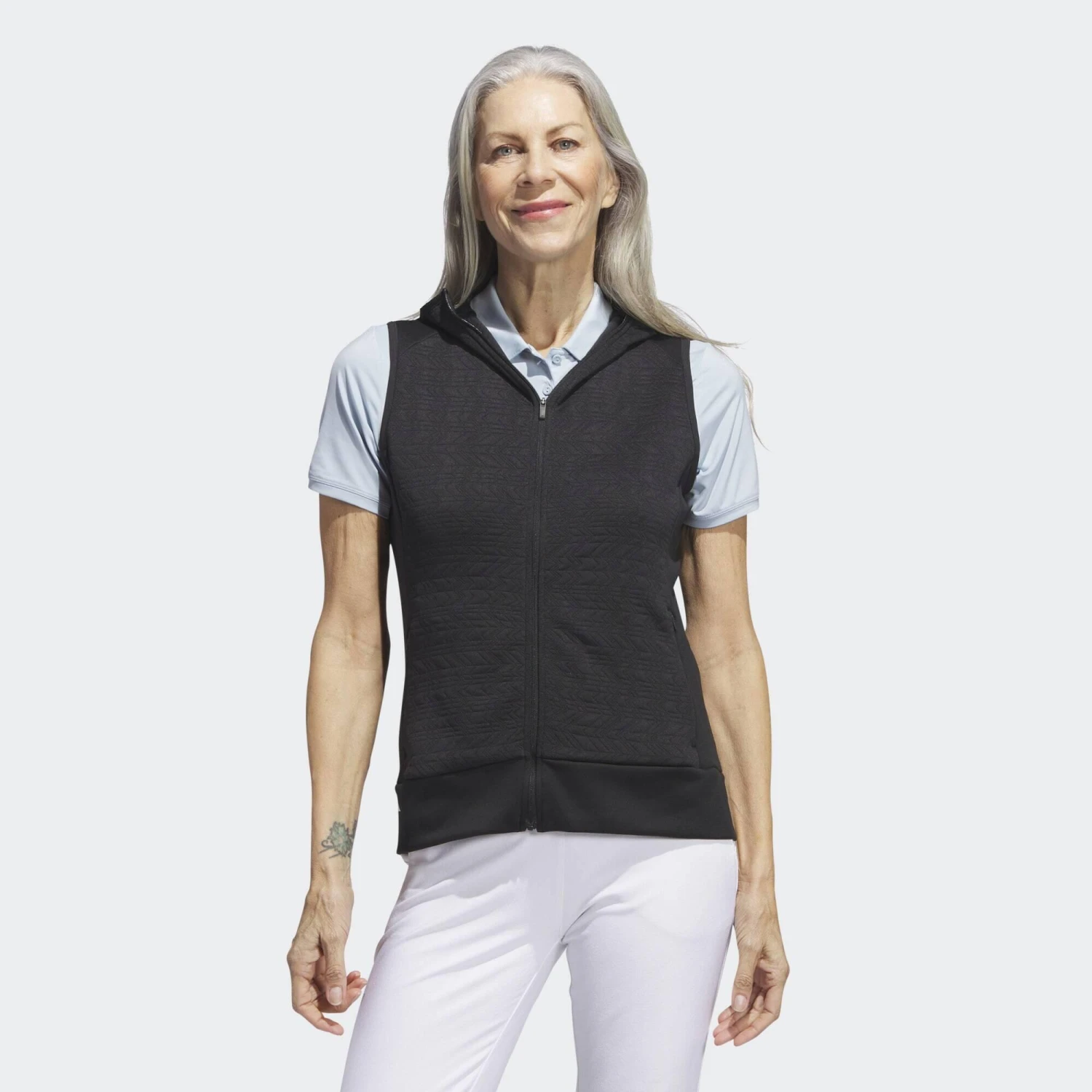 Layer up for cool-weather rounds. This adidas golf vest offers extra protection from the cold with insulating COLD.RDY. The full-zip design has a hood for added coverage when you need it. Front zip pockets stash your stuff while you play, and a jacquard pattern on the front delivers stepped-up style that looks sharp on and off the course. Made with 100% recycled materials, this product represents just one of adidas’ solutions to help end plastic waste.