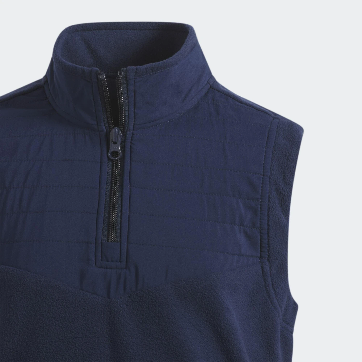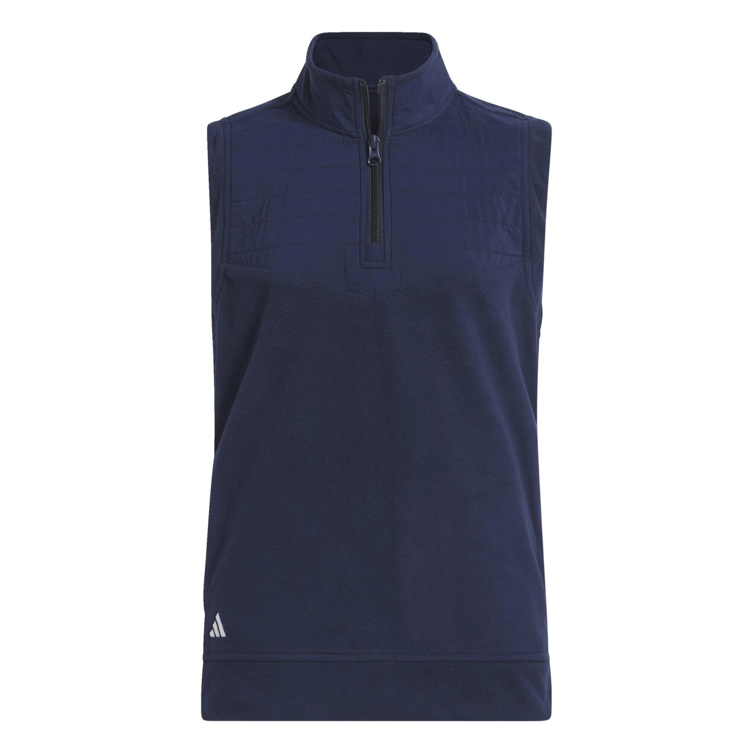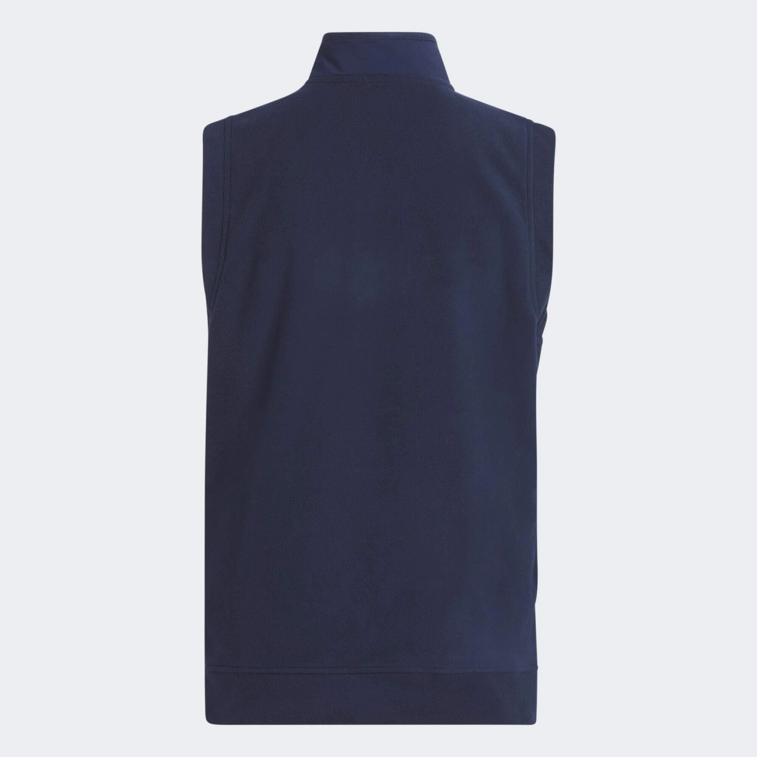 Pull on this juniors’ adidas golf vest for cool-weather rounds and climb the leaderboard in comfort. Layer it over a polo or long sleeve tee and you’ll stay warm through the last hole without compromising your swing. The soft polar fleece feels cosy as you play, and a mesh lining adds breathability. Side seam pockets stash your stuff and warm up your hands between shots. A minimum of 70% of this product is a blend of recycled and renewable materials.