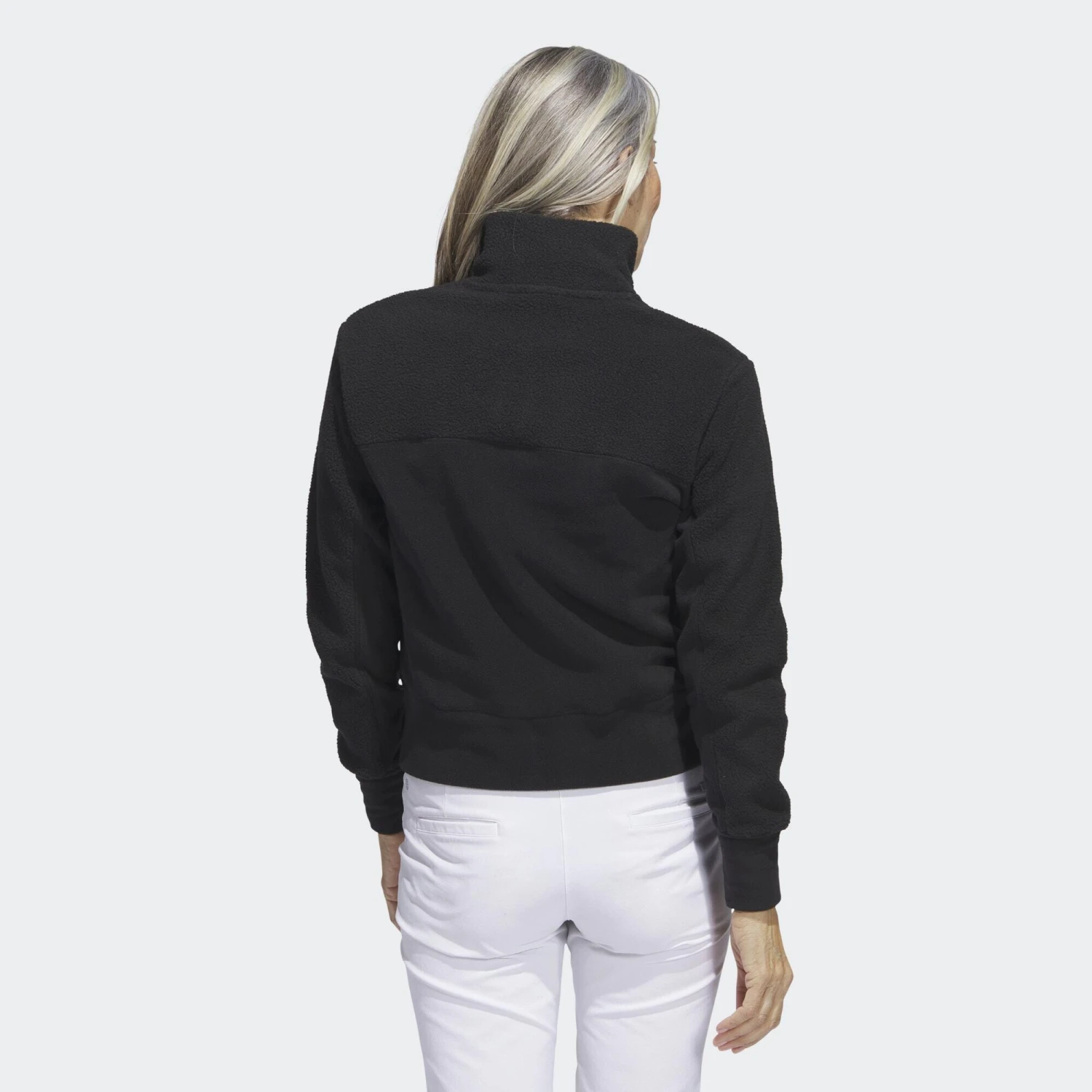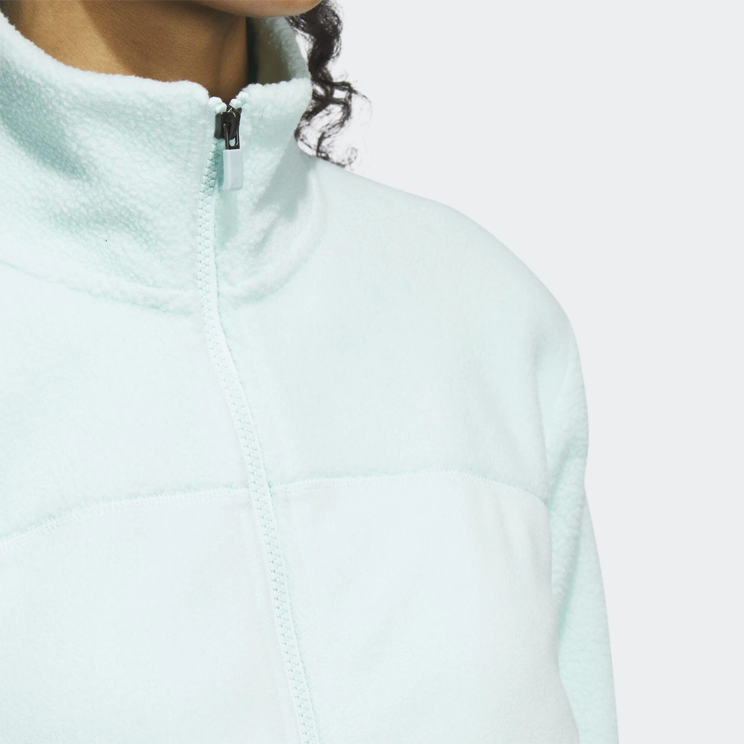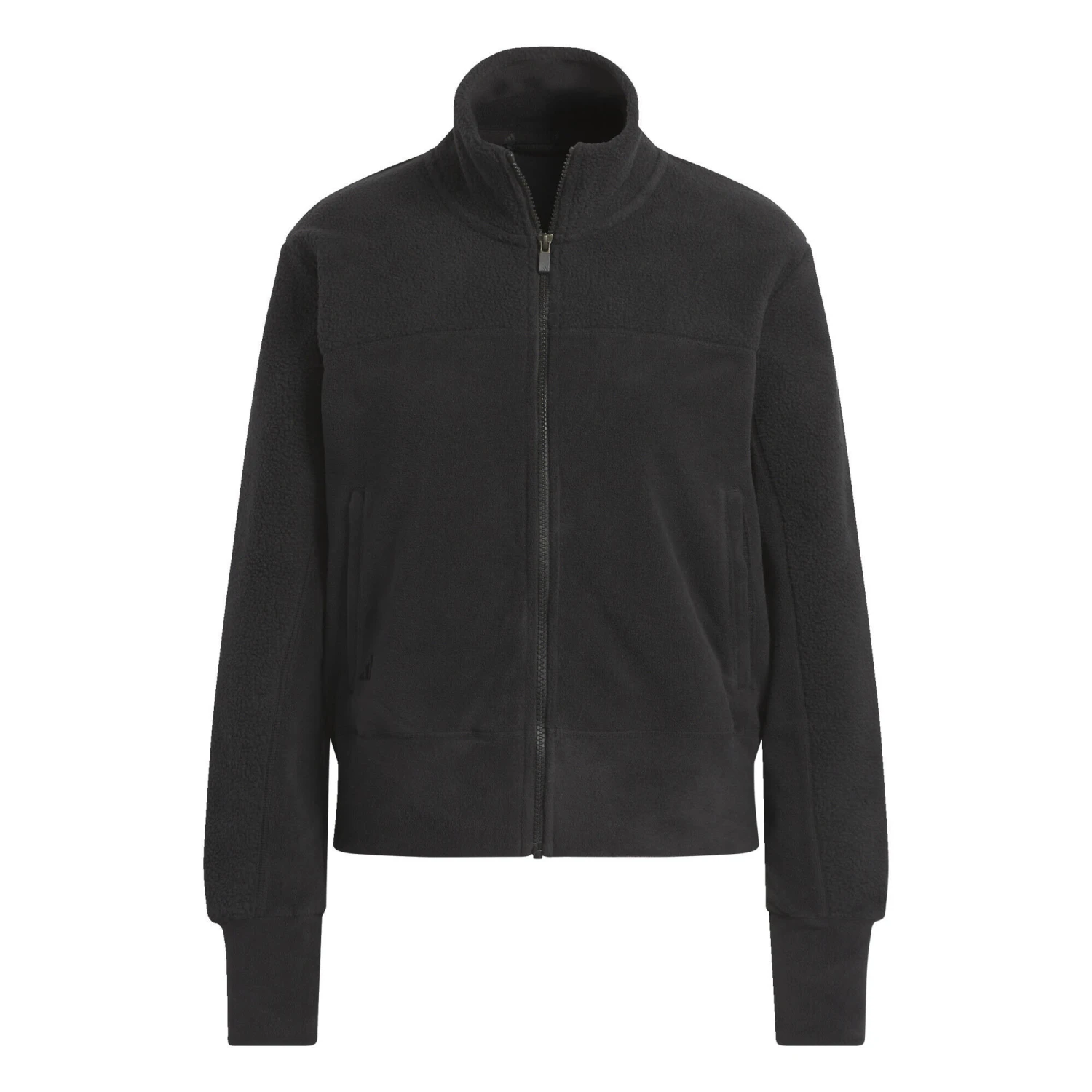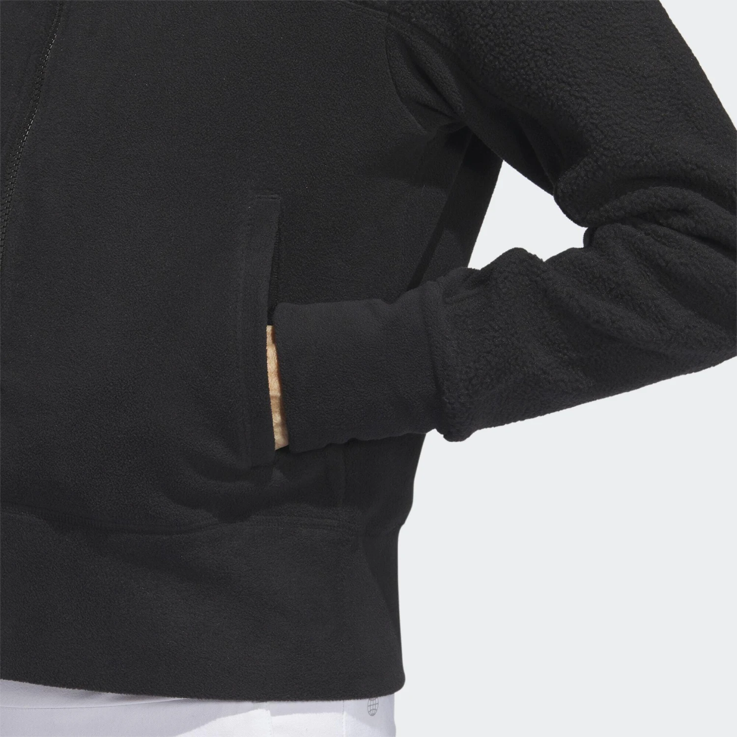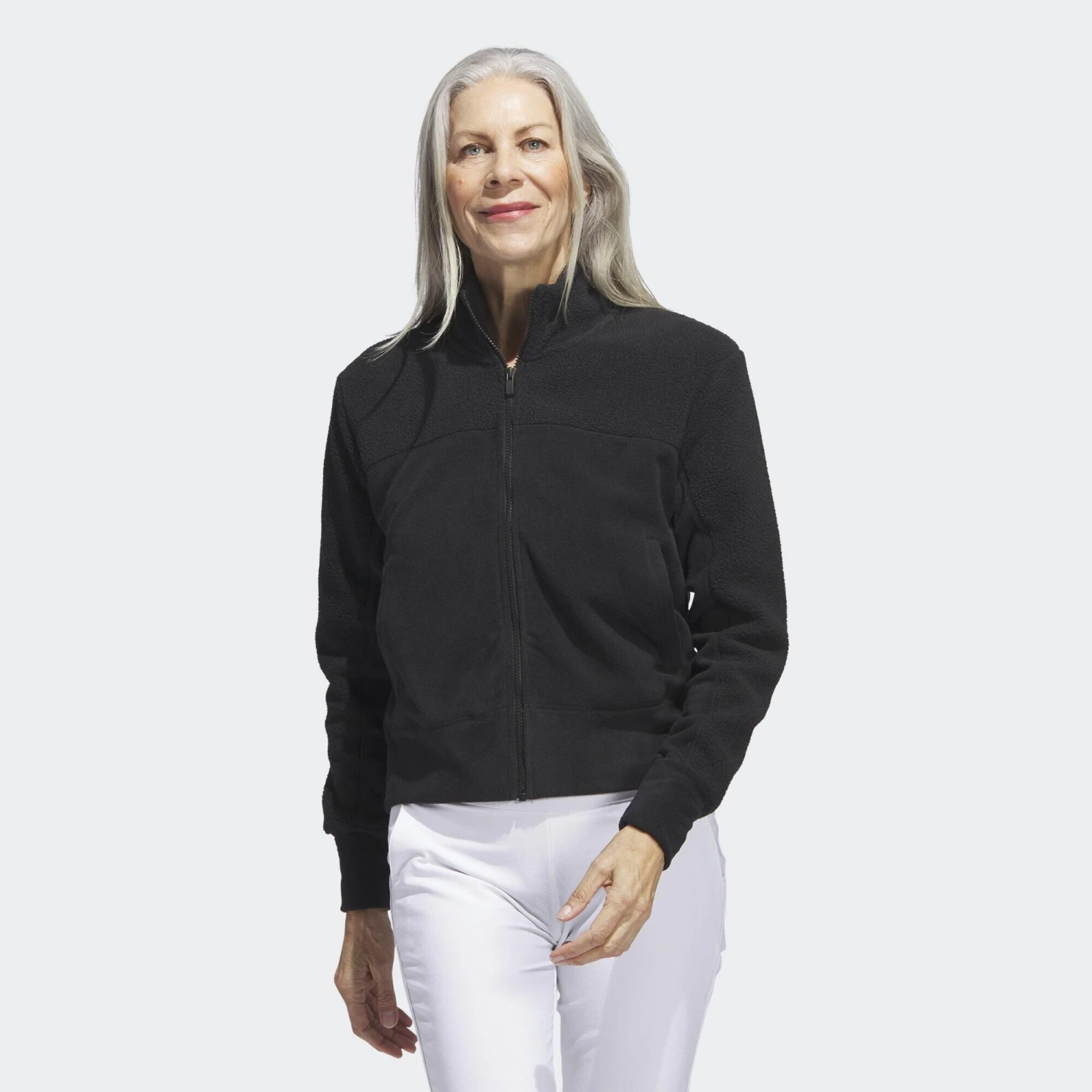 Play through cool weather in clean style. This adidas golf jacket cuts a sleek silhouette, with its high collar and waist-length design. Polar fleece keeps you cosy throughout your round, and front pockets warm up your hands between shots. The on-point look transitions easily from the course to the clubhouse. Made with 100% recycled materials, this product represents just one of adidas’ solutions to help end plastic waste.