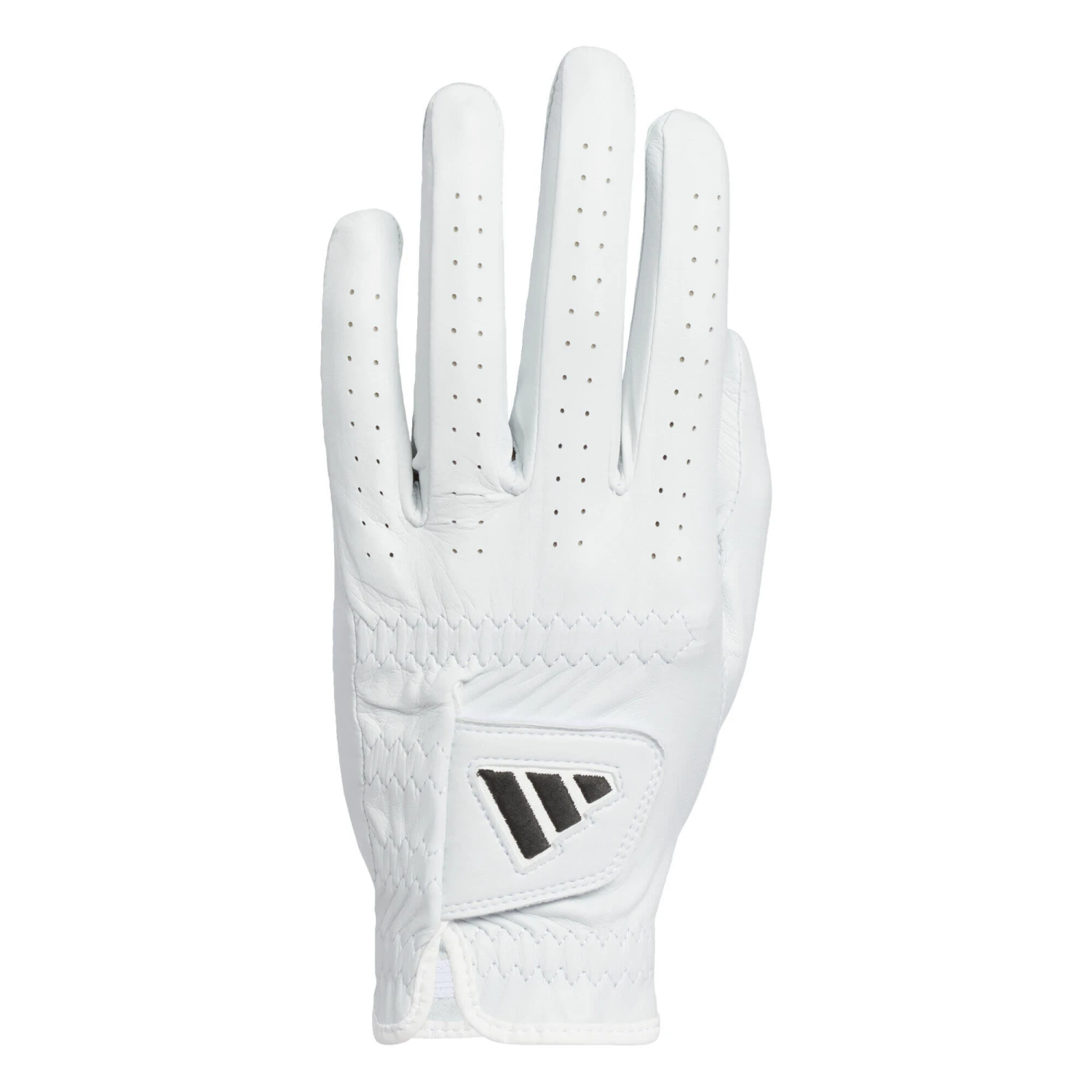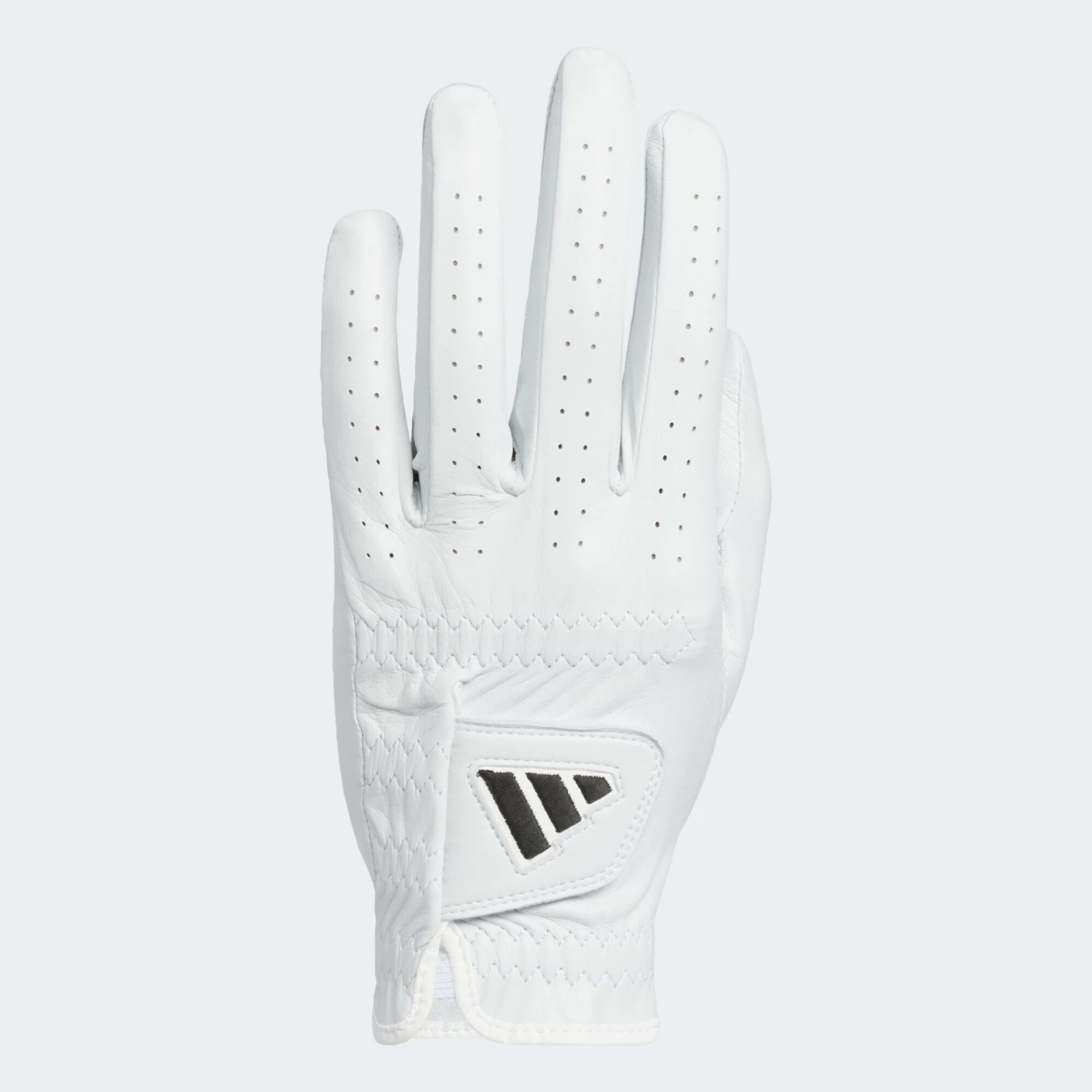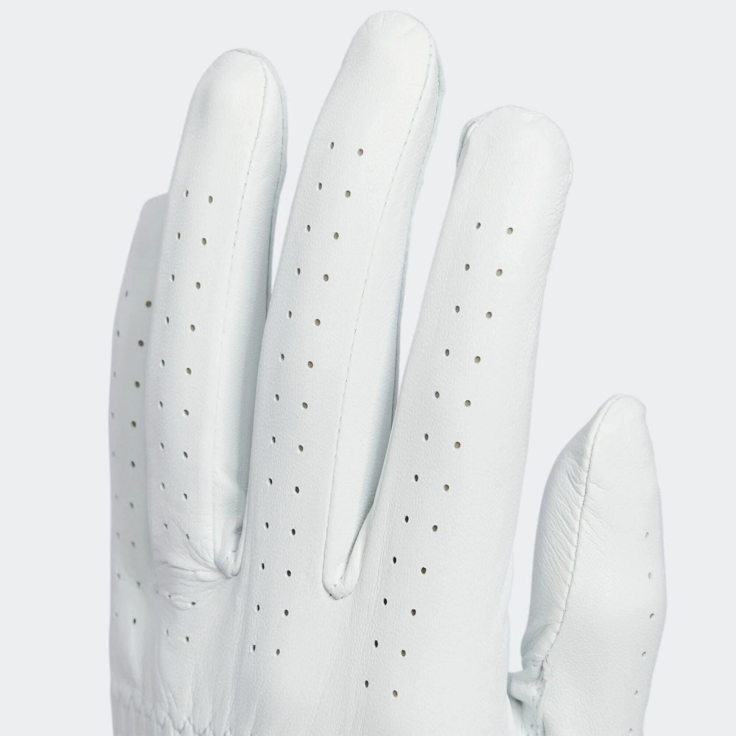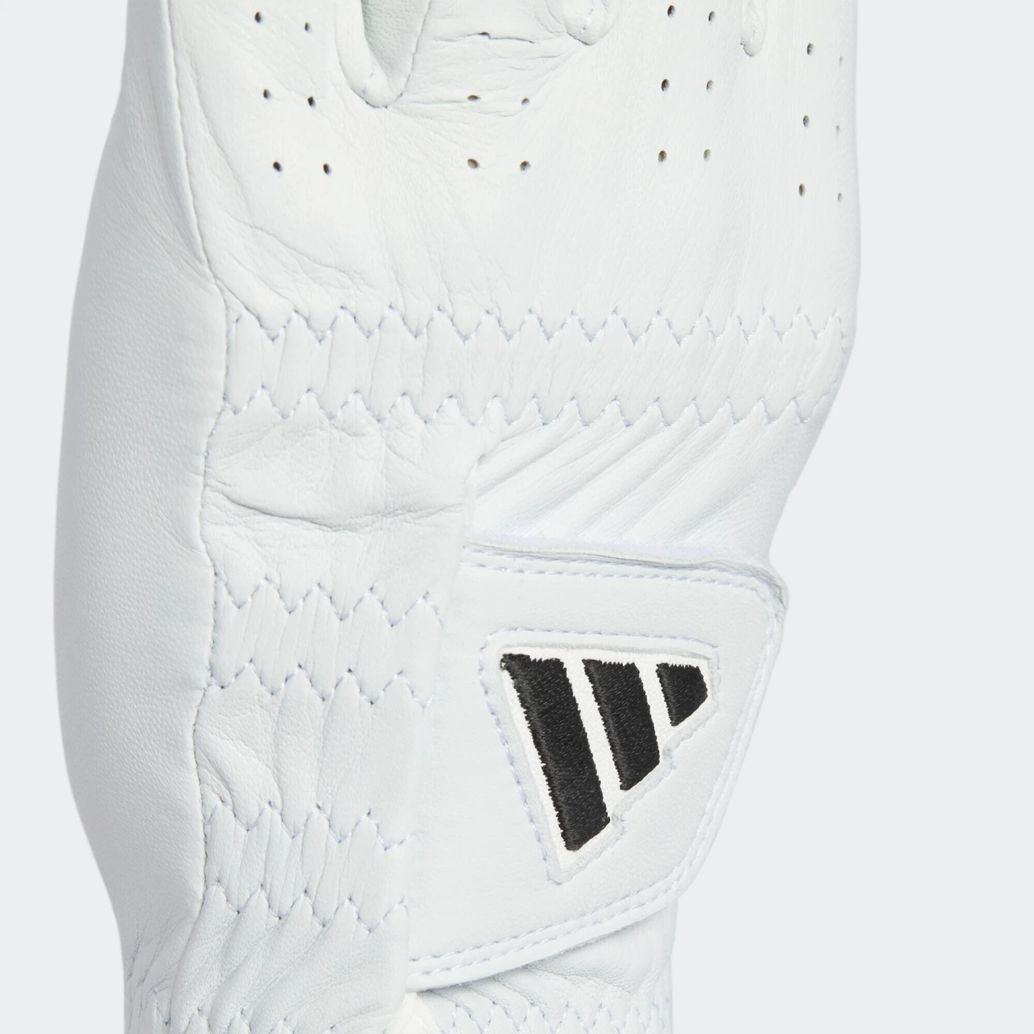 Maintain a secure grip on your club in any conditions with this adidas golf glove. It’s made of leather for natural flex and a firm hold. Perforations in the fingers add breathability. A hook-and-loop closure lets you adjust for the perfect fit.