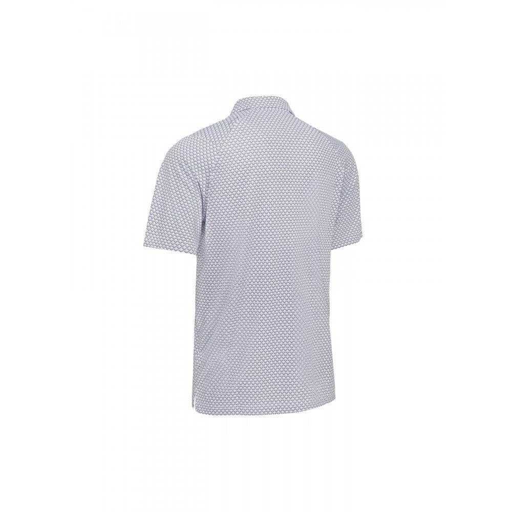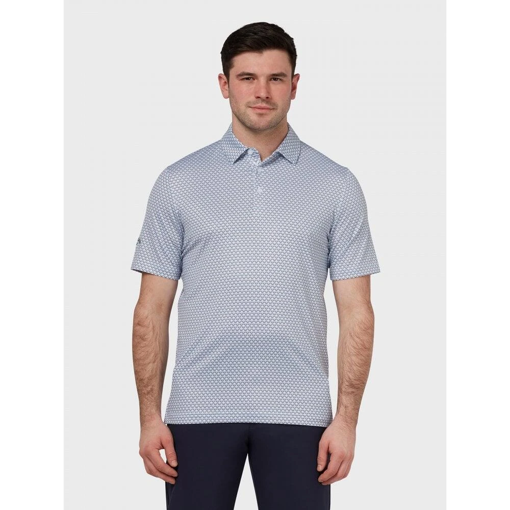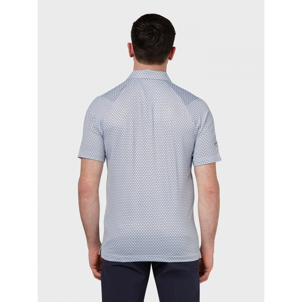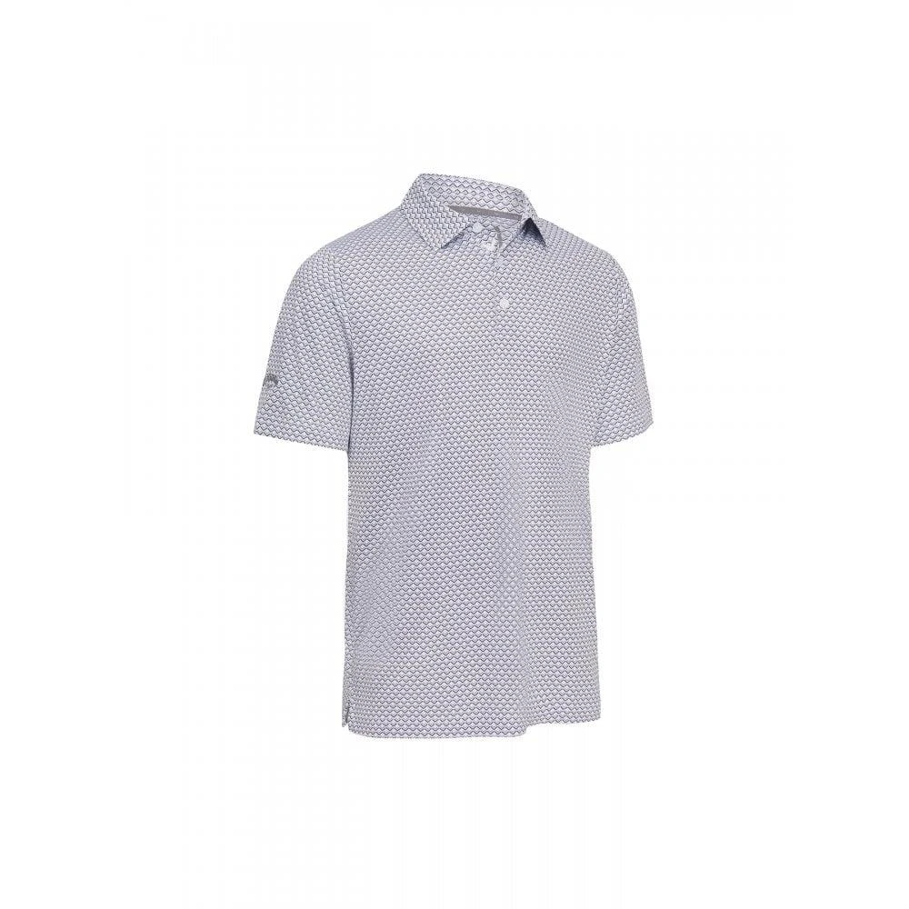 A 3-button placket polo shirt, constructed from a moisture wicking stretch fabric. Swing Tech technology which provides noticeably less restriction and more stretch to maximise the range of motion on every swing. All over print design with Callaway Tour logo on the right sleeve.
