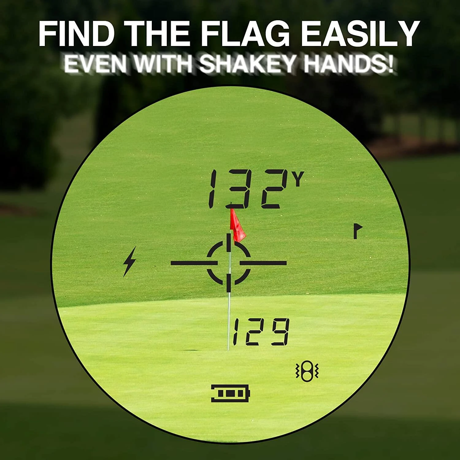 Easy to lock on with vibrating pin lock: pin tracker helps you to lock onto the flag up 400 yards away, great for shaky hands and windy days. Vibrating pulse lets you know when you are locked onto the target