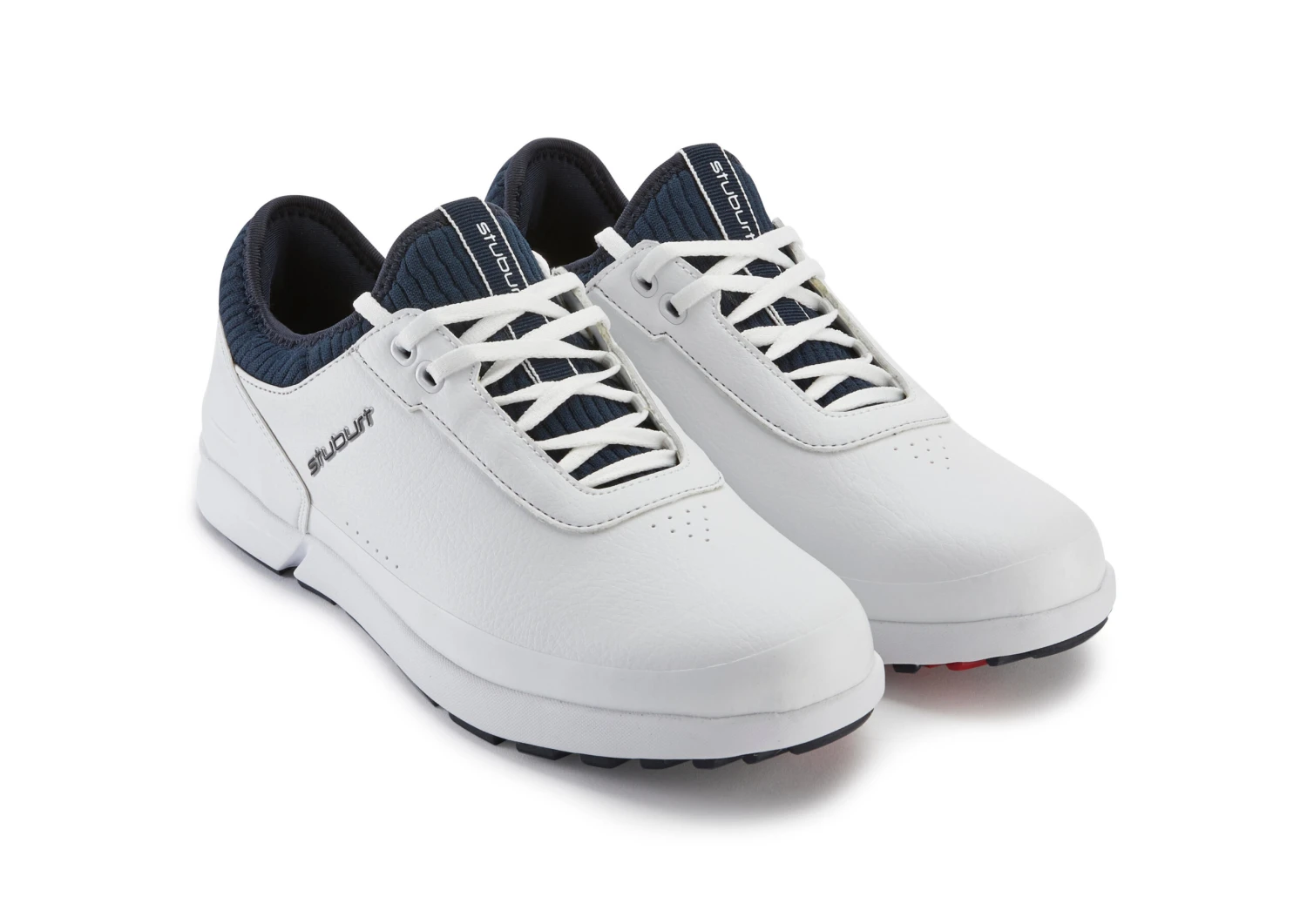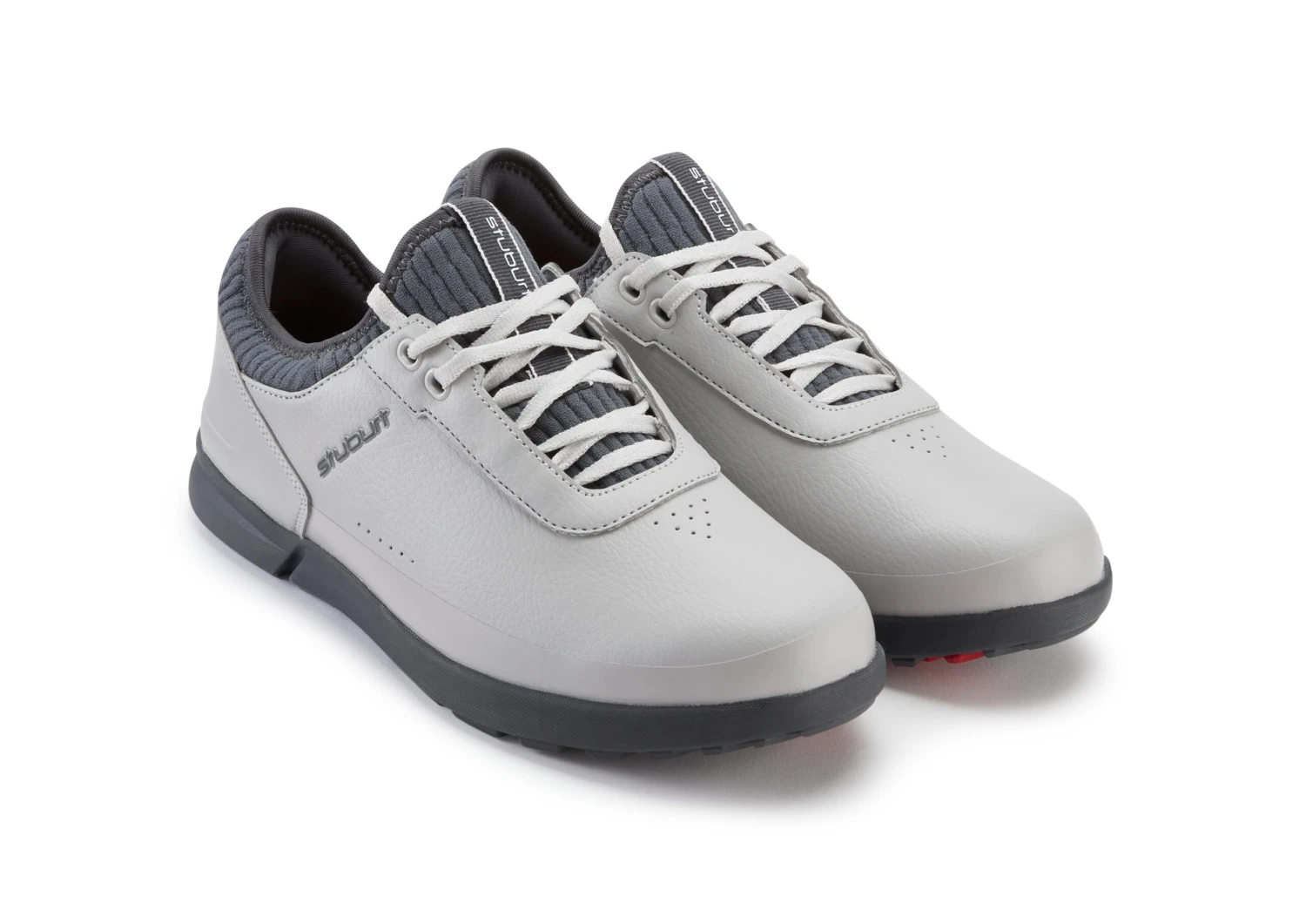The EVOLUTION CASUAL bridges the high street and the golf course. Casual styling and the new Stuburt DUAL outsole provide comfort and performance any-wear you choose, while perforated soft grain PU uppers combine with our new Sock-Fit system for long lasting breathability and comfort. Subtle stitch and print details including raised soft sheen branding mark this hybrid trainer out as the perfect choice wherever you’re heading