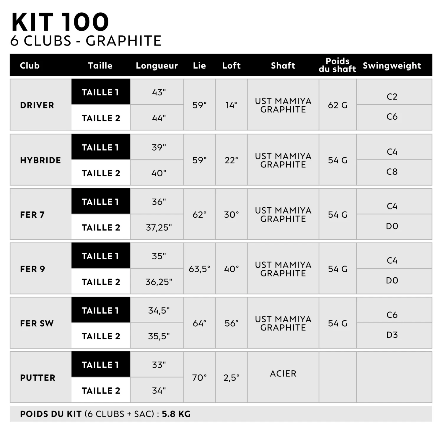Whether you opt for the 10-club set or start with the 6-club half-set, don’t worry, you can add to it. All 100-clubs are available individually in 2 sizes and in left- or right-handed.