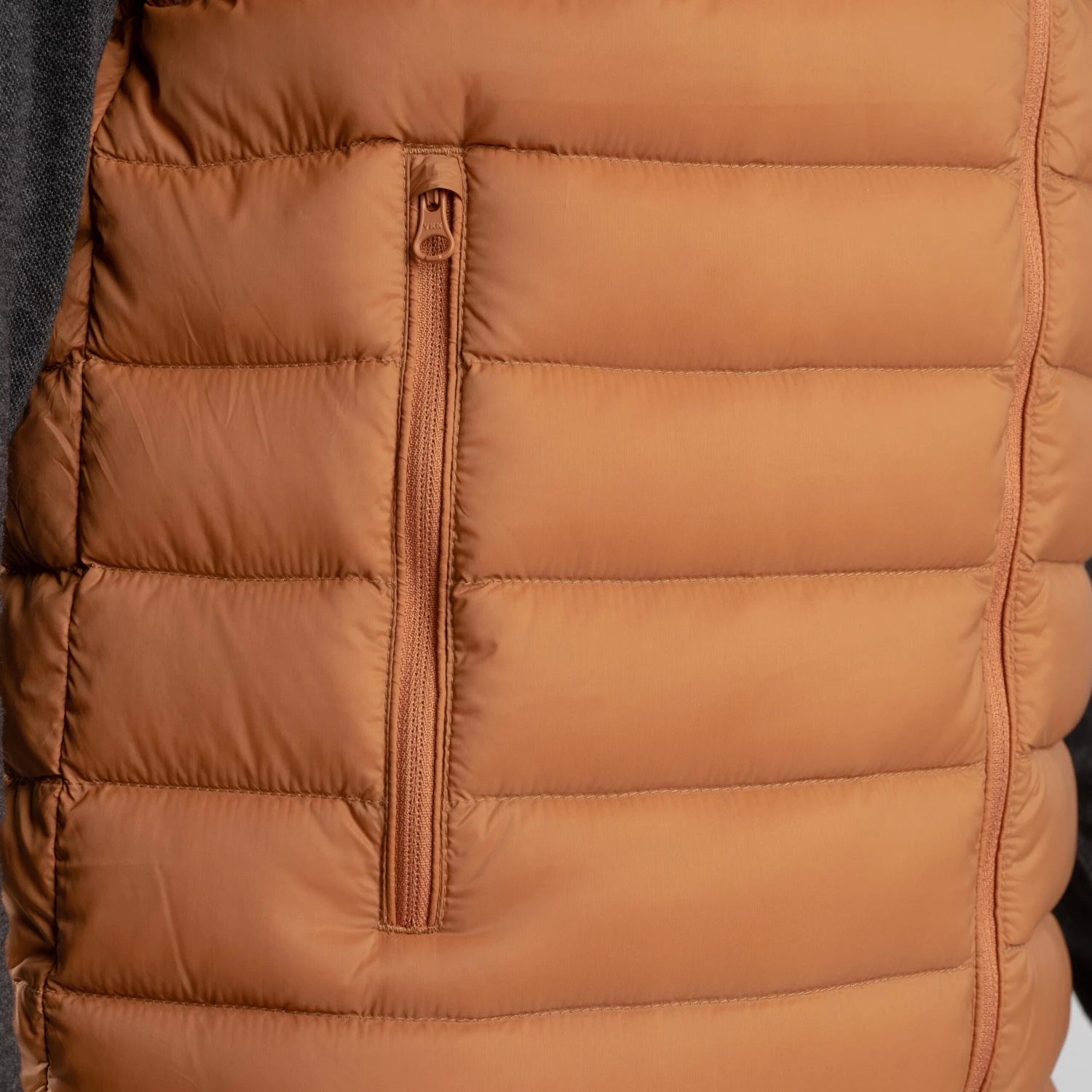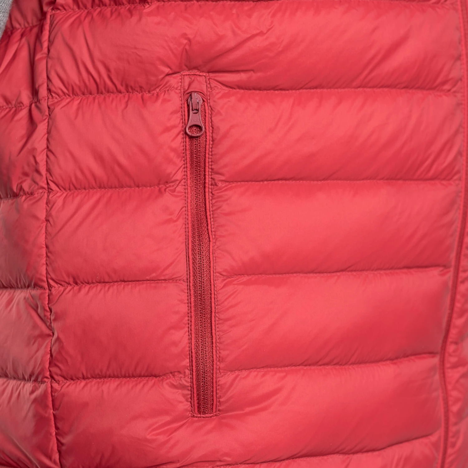 This down jacket is very versatile. It can be worn over a polo shirt, a pullover or a shirt. It will keep you warm and go unnoticed under a jacket. If you get caught out in the rain, it is water repellent, i.e. water droplets run off the fabric until you can find shelter or put on waterproof clothing.