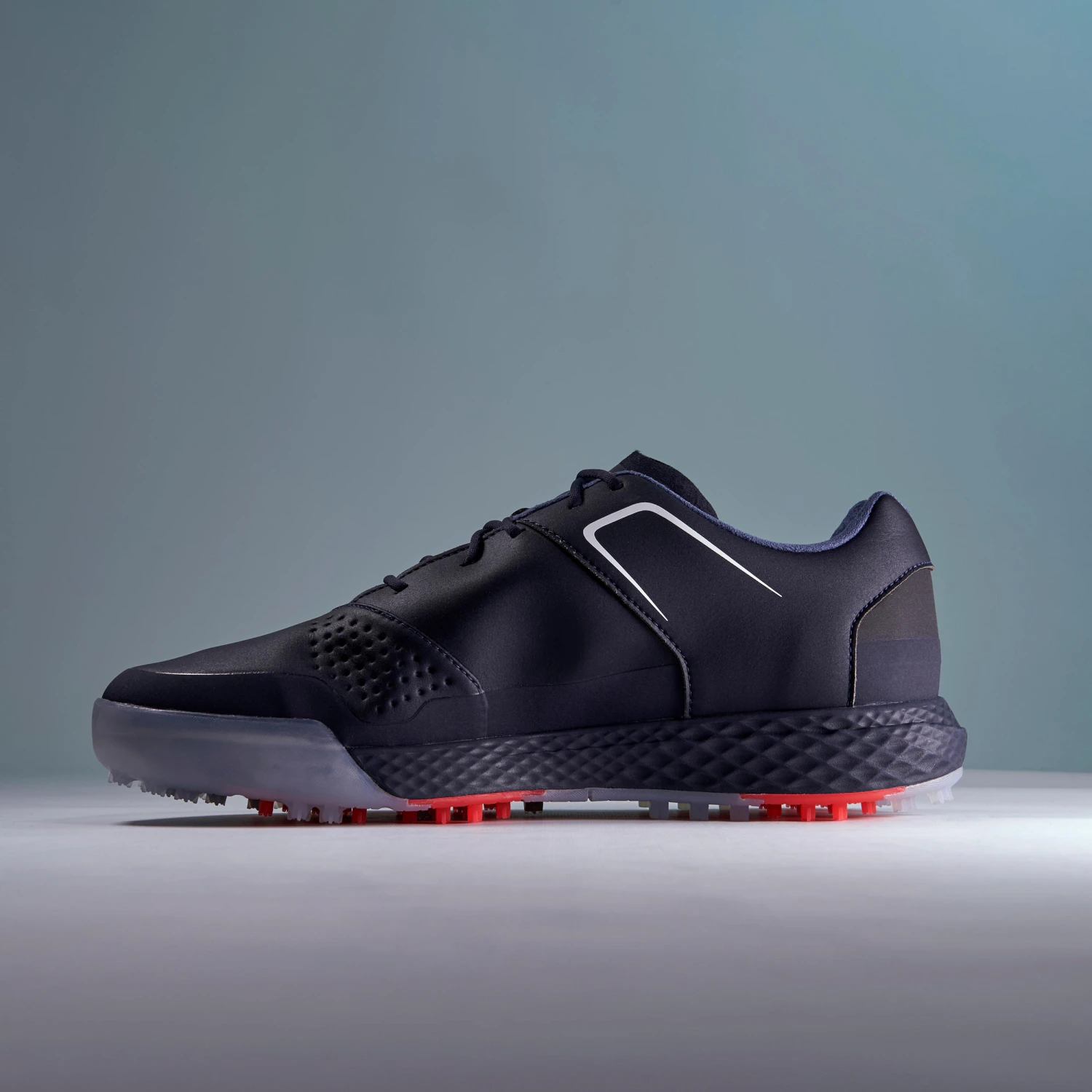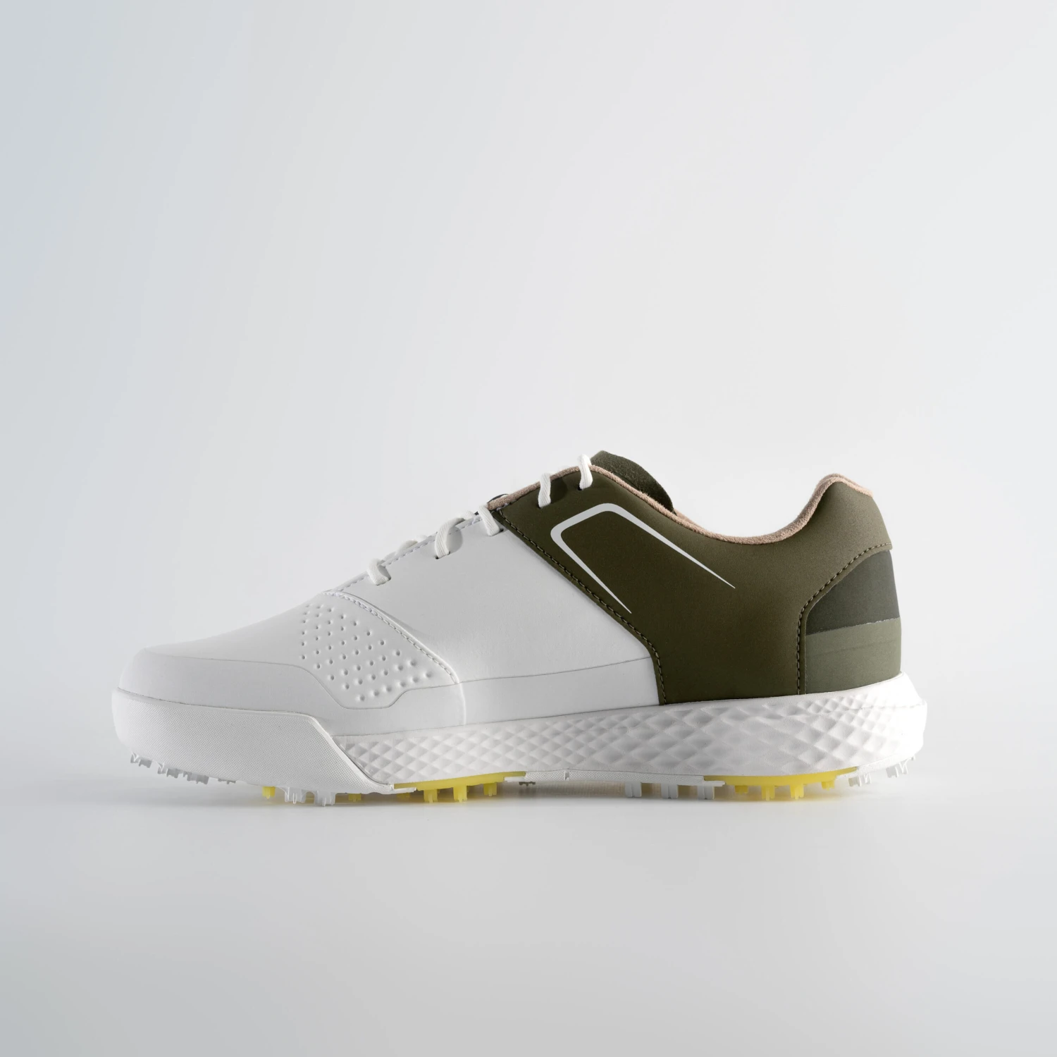 More rigid TPU spikes improve traction on the grass throughout your swing, and the more flexible rubber spikes give you more versatility as you walk the fairways.