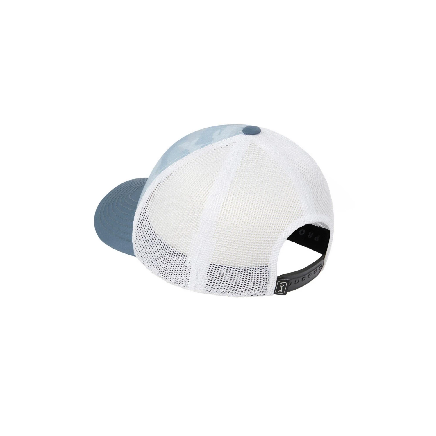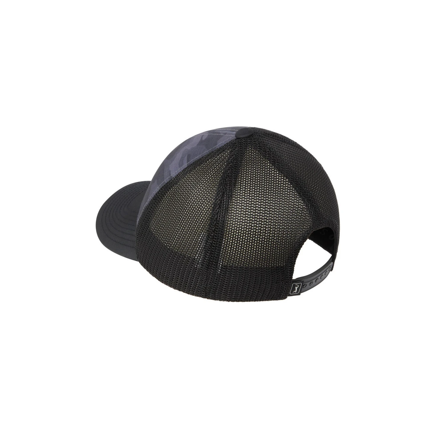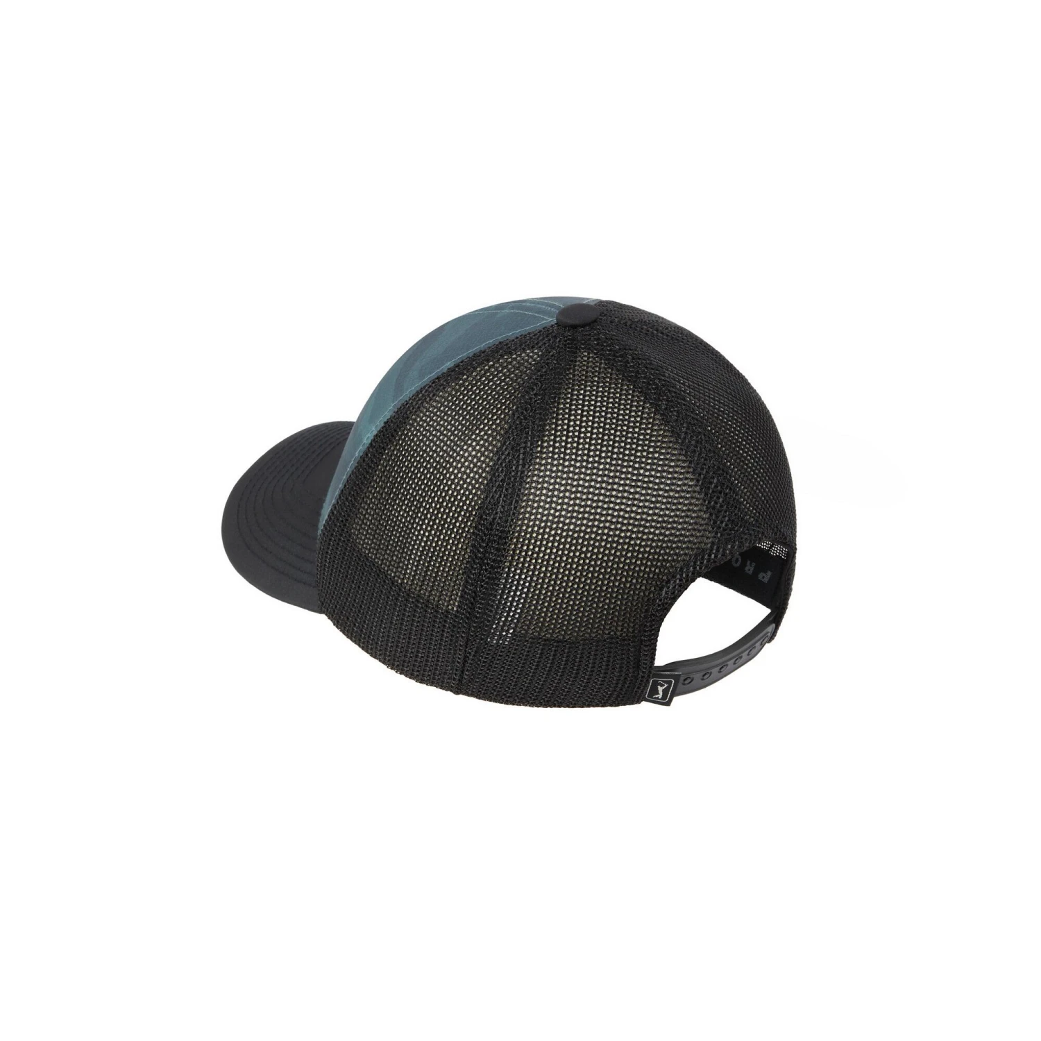 - Button at Top, Curved Brim, Mesh Backing, Structured Front Panel.