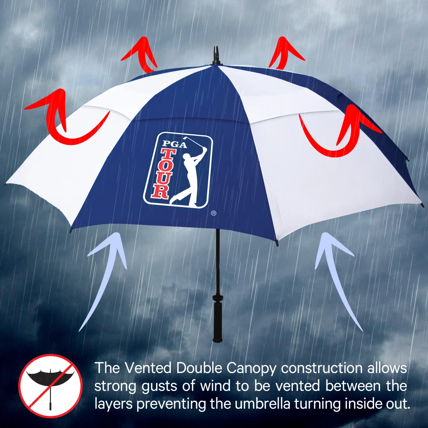 The official golf umbrella from PGA TOUR designed to keep you dry and stop the wind from blowing it inside out.