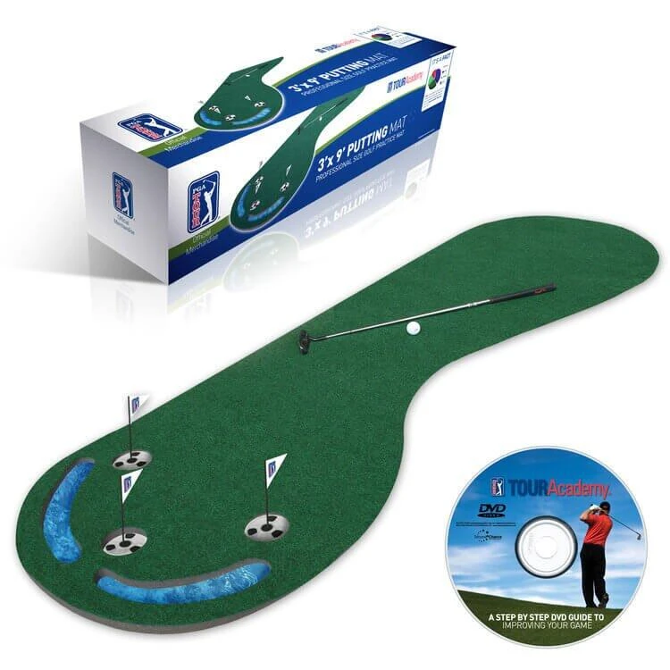 For the passionate putter looking to practice until perfect. This PGA TOUR Pro Length Putting Mat is made from deluxe artificial turf for a realistic roll while offering a Massive 3ft x 9ft putting area to reflect true tournament greens. Perfect for putting indoors or outside.