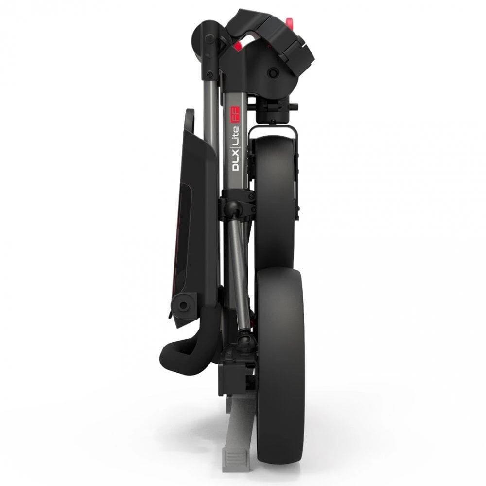 The all-new DLX-Lite FF Push Cart has been cleverly designed with optimum storage in mind. The simple folding and unfolding system allow it to be folded down flat to give slimline compact storage. The innovative flat fold design provides unique options for storage and transportation of your golfing gear.