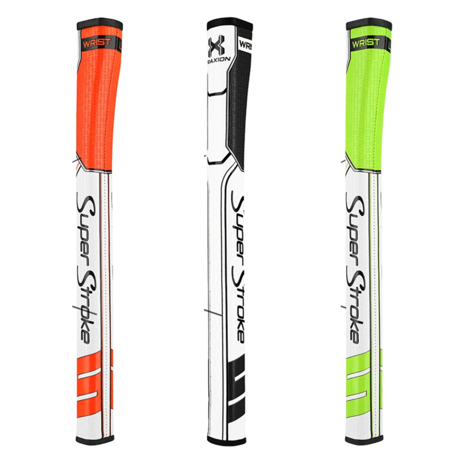 The SuperStroke Traxion Wrist Lock putter grip has a width of 1.23 inches, a weight of 75g, and a core of 0.58 inches. It is available in a variety of colors, including Orange/White, Black/White, and Green/White. Overall, the SuperStroke Traxion Wrist Lock putter grip is a reliable and advanced option for golfers looking to improve their consistency and overall putting performance on the green.