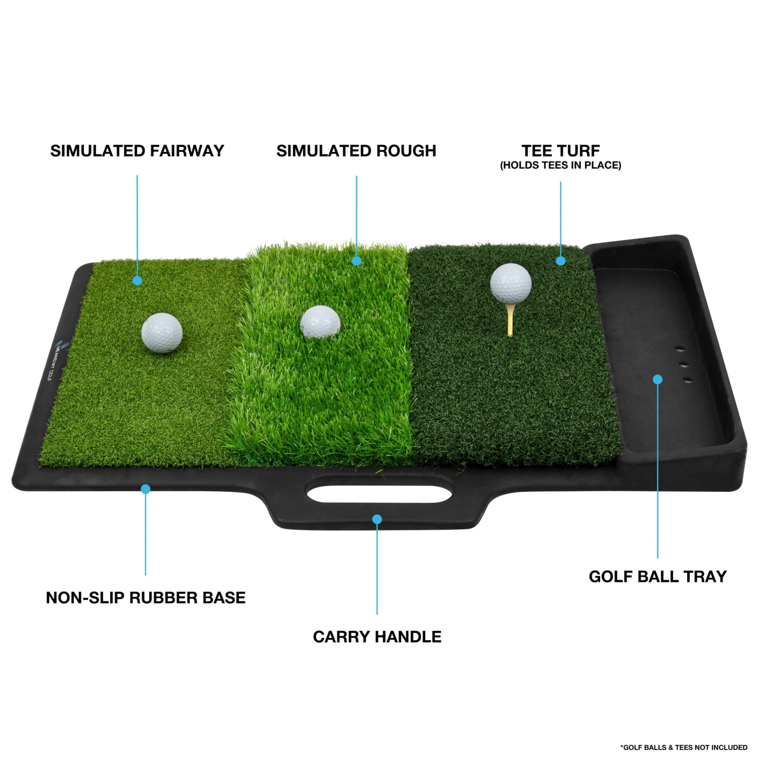 Tri-Turf Hitting Mat is the perfect product to fine-tune your driving, irons, and short game. You can practice any shot with rough turf, fairway turf, and tee turf.
