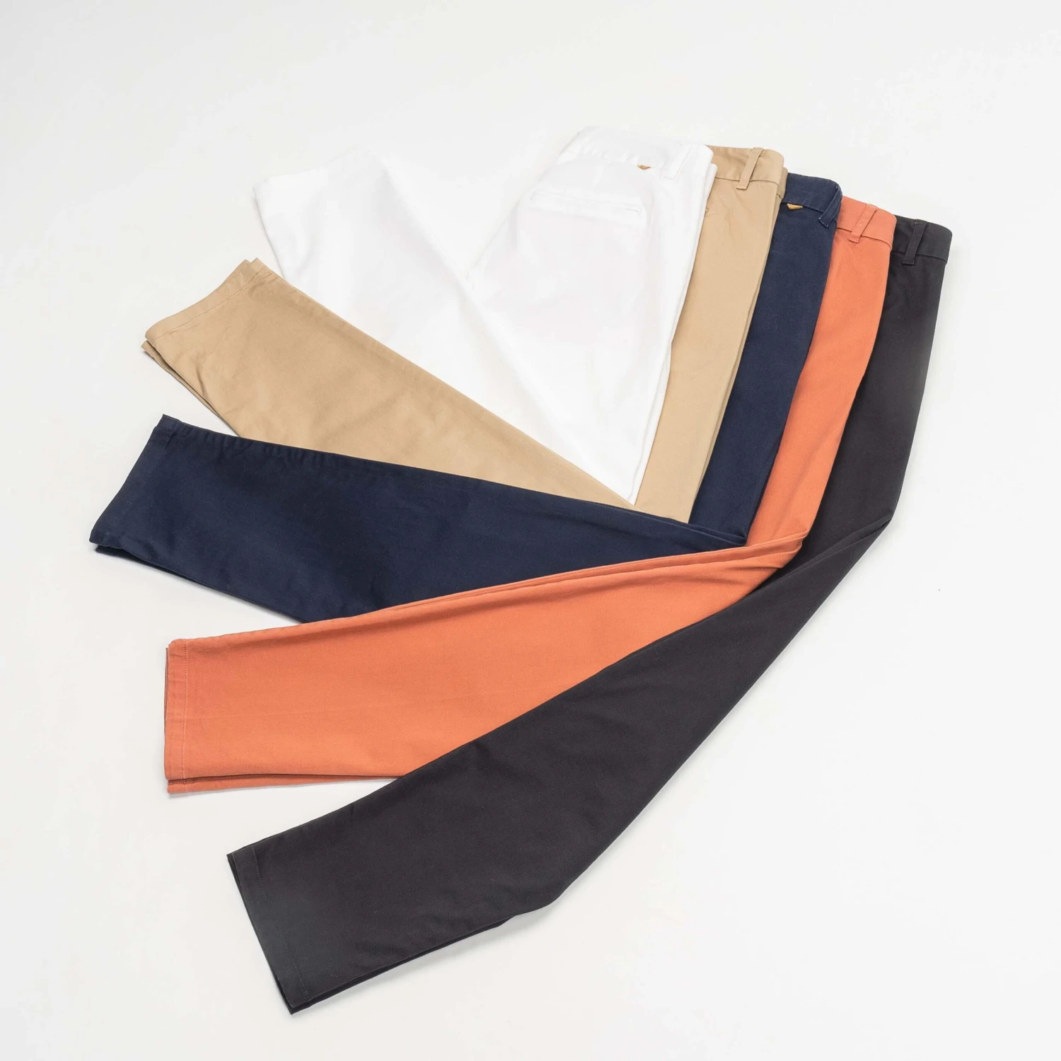 The cotton elastane fabric was selected after a series of very precise comparative tests. It combines comfort, perfect fit and style in a pair of easy-care trousers.